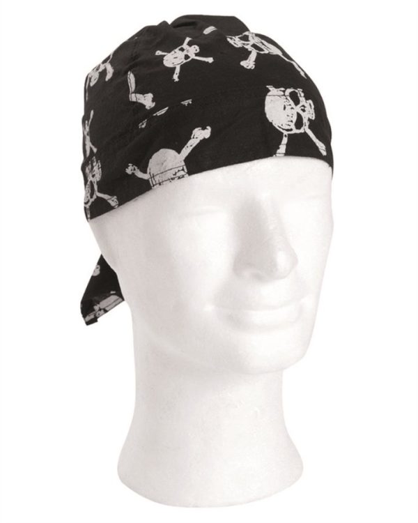 Bandana militare MIL-TEC nera con logo teschio in taglia unica regolabile tramite laccetti posteriori realizzata