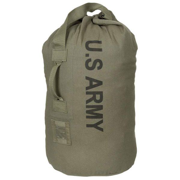Borsa da trasporto militare MFH tipo americano duffle bag, con logo US ARMY in cotone molto resistente con chiusura ad anelli, con tracolla e maniglia per trasporto.